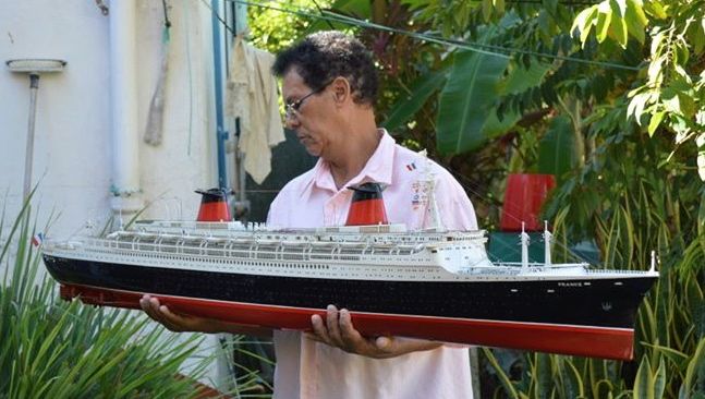 De là, une idée lui trotte dans la tête : réaliser de toutes pièces au 1/200ème une maquette exacte du FRANCE, paquebot emblématique et fleuron de la flotte transatlantique française entre 1962 et 1974,  qui changea deux fois de propriétaire et de nom avant de finir sa vie en 2009, démantelé en Inde, aux chantiers d’Alang.