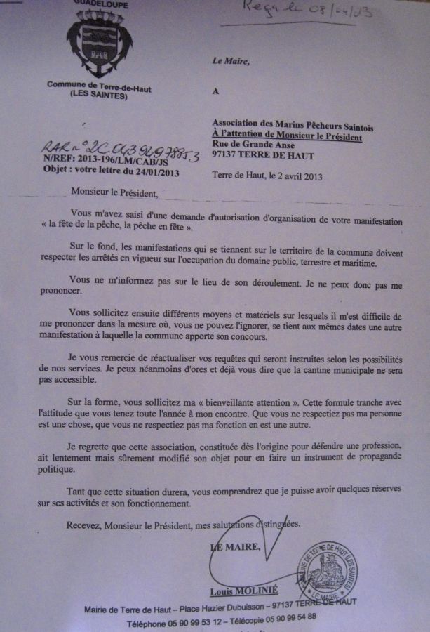 Lettre du maire refusant toute contribution communale à l’AMPS