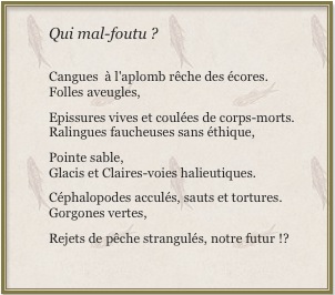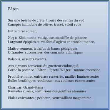 Doué avant tout pour les mathématiques, ce sympathique et très discret Saintois de 37 ans n’a cependant pas fait l’impasse sur la littérature, et singulièrement sur la poésie. Art pour lequel il nourrit depuis toujours une passion qu’il exprime dans des textes remplis d’émotion et de sensibilité, inspirés sans doute par les longues absences loin des siens et la contemplation des éléments, lorsque ses lourdes responsabilités lui en laissent le loisir. Je remercie ses parents, Francis et Maguy Maison-neuve de m’avoir communiqué, parmi d’autres, ces deux poèmes de Steeve ici reproduits.