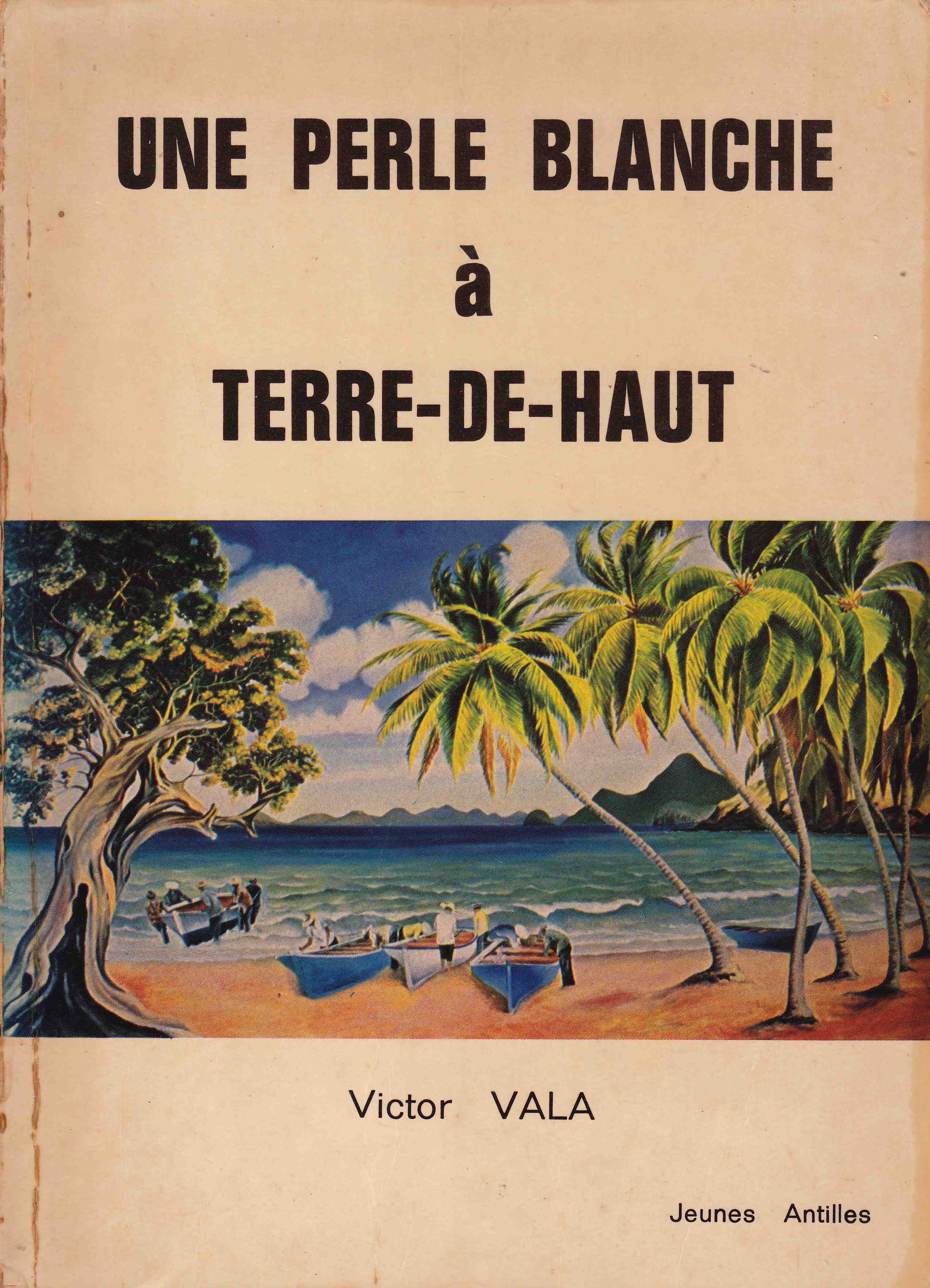 Publiée en 1978 aux Éditions Jeunes Antilles, la première de couverture magnifiquement il-lustrée d’un tableau du peintre saintois Darius Valvert, Une perle blanche à Terre-de-Haut est préfacée par un ex-professeur de philosophie, bien connu en Guadeloupe et au-delà, Laurent Farrugia, lui-même romancier, essayiste et dramaturge. Lequel présente d’emblée le livre comme « un hymne à la mer », même si l’intention et le projet de l’auteur dépassent de loin cette problématique. Certes, Victor VALA transcrit incidemment dans son récit, quoique de façon formelle et noir sur blanc, les règles ancestrales, jusqu’alors non écrites, de la pratique de la pêche à la senne aux Saintes, règles qui perdurent encore aujourd’hui en dépit de l’évolution des techniques et de la disparition progressive des équipages, mais, empressons-nous de le dire, son roman, le seul qu’il ait écrit, est bel et bien, avant tout, une histoire d’amour complexe, dont le contexte géographique, maritime et insulaire, n’est que le cadre obligé, au demeurant particulièrement bien exploité aux fins de l’intrigue, disons même des intrigues successives.