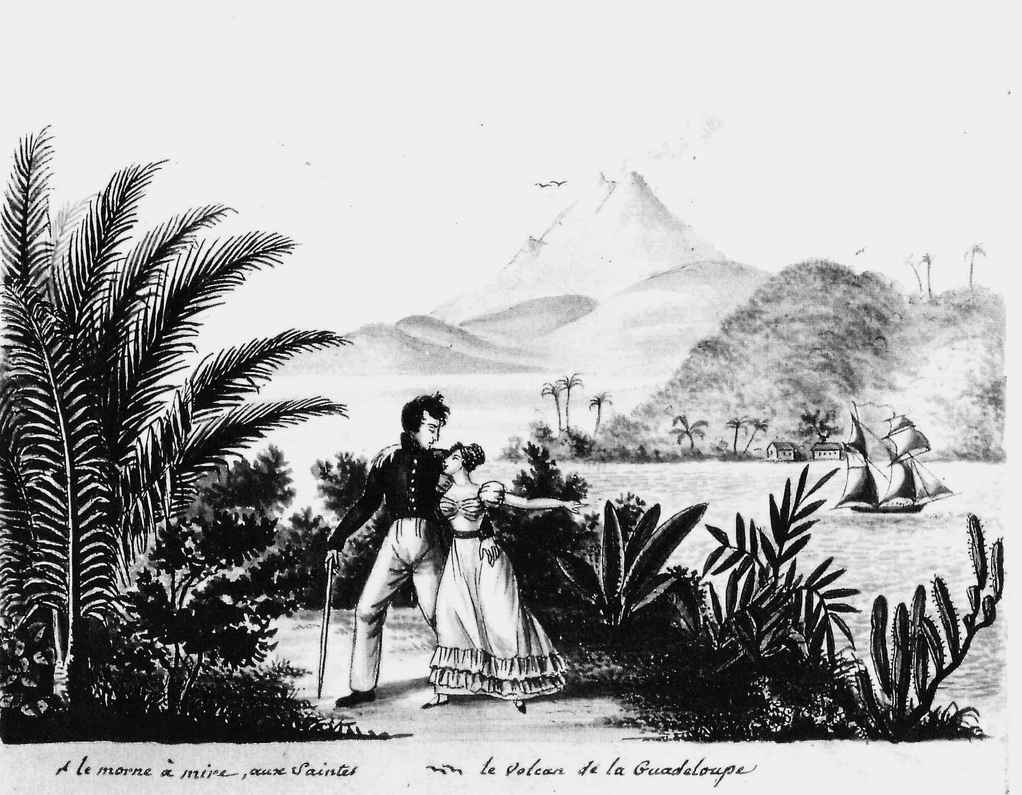 Un mois s’écoule au cours duquel, pour tromper son ennui et surtout pour satisfaire sa passion de naturaliste, Fréminville arpente quotidiennement les mornes et les rivages de la Terre d’en haut, s’adonnant à la recherche de spécimens botaniques et animaliers, de productions marines et de coquillages. C’est à l’occasion d’une de ses promenades qu’il remarque « une fort belle maison bâtie au haut du morne Morel et à laquelle conduit une charmante avenue de palmistes ». Il apprend alors que cette maison appartient à une certaine Madame C…, riche veuve de Guadeloupe, et qu’elle l’habite avec une sœur plus jeune qu’elle. « Ces dames, écrit-il, avaient quitté une fort belle propriété qu’elles possédaient près de la Pointe à Pitre, pour venir passer aux Saintes la saison des maladies. »