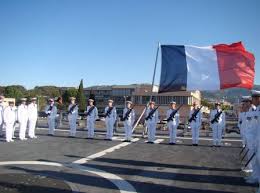 En un mot, les escales aux Saintes de la Marine nationale, et de la Jeanne d’Arc en particulier, étaient pour nous, sur tous les plans, plus que providentielles. Nous vivions pour ainsi dire, d’une année sur l’autre, dans la perspective excitante de voir se profiler à l’horizon leurs légendaires silhouettes. Et durant les séjours particulièrement animés de leurs équipages, notre vie était rythmée par les bienfaits qu’ils nous prodiguaient généreusement, ponctuée matin et soir par la musique caractéristique du clairon accompagnant la levée et la descente des couleurs. Musique sur laquelle nous avions composé ce quatrain, chef-d’œuvre de naïveté infantile pour le moins irrespectueuse, que nous chantions en chœur aux récréations :