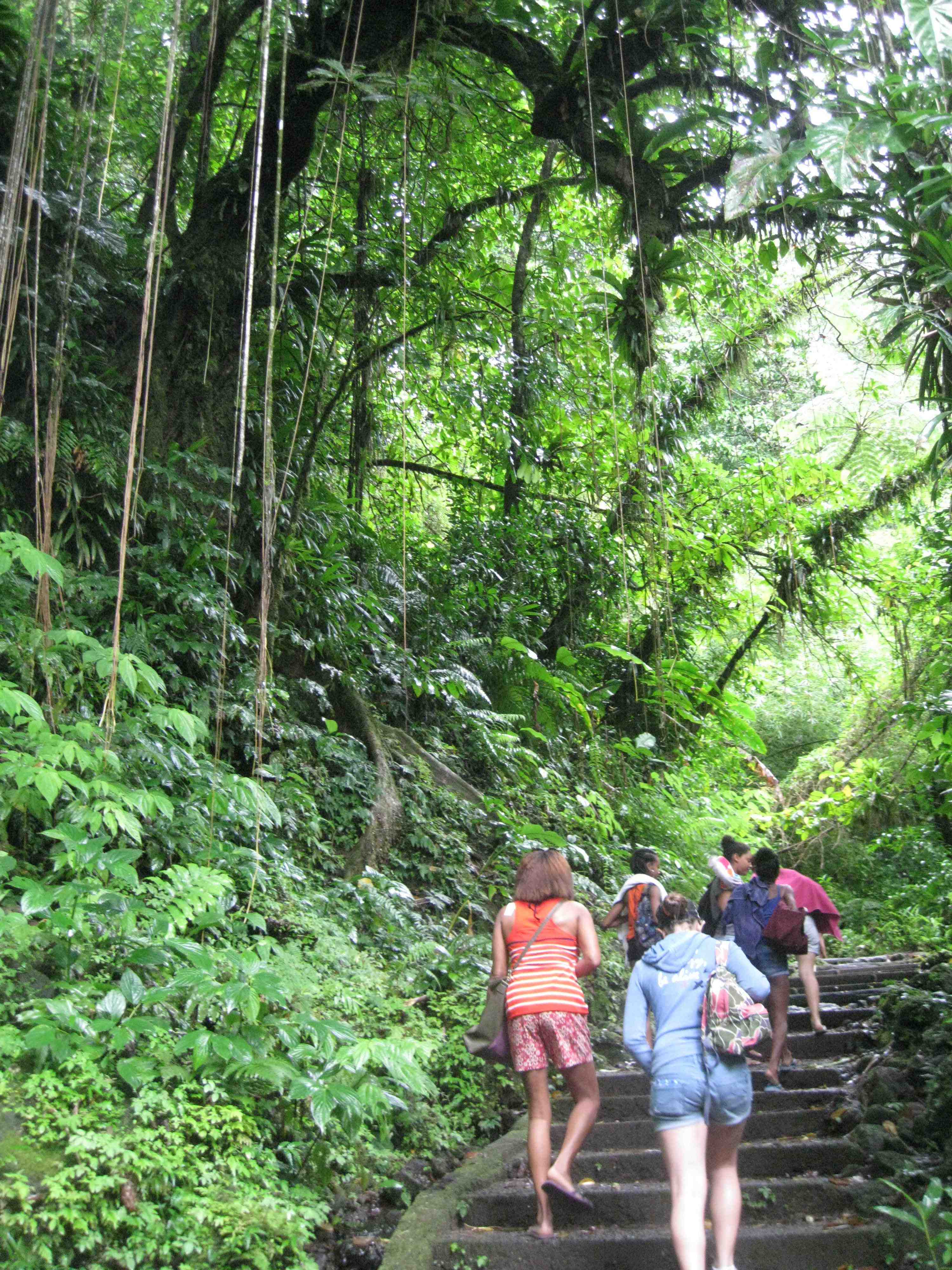 DSCN9172 - copie« Personnellement, j’ai vraiment apprécié d’être à la Dominique. La ville de Roseau a l’air aussi familier que Pointe-à-Pitre. L’hôtel Fort Young est agréable ainsi que la vue sur l’horizon. Le Sheppee Fun Tours, l’attraction principale du voyage, fut un bon moment. Le circuit en autocar nous a permis de voir les paysages et le relief de l’île. L’arrière-pays est encore naturel. Il n’y a pas d’aménagements détruisant le paysage et l’on admire les immenses mornes et la forêt. Les différents arrêts nous ont permis d’admirer le Ti Tou Gorge parcouru par Orlando Bloom lors du tournage des Pirates des Caraïbes. On a pu plonger dans la rivière et admirer la Gorge. L’arrêt à Trafalgar Falls nous a permis de nous baigner dans une rivière de source chaude contrairement à celle de Emerald Pool, particulièrement fraîche, avec sa cascade sous une voûte rocheuse. Pour ne rien vous cacher, les guides étaient agréables et soucieux de leurs clients. » Axel