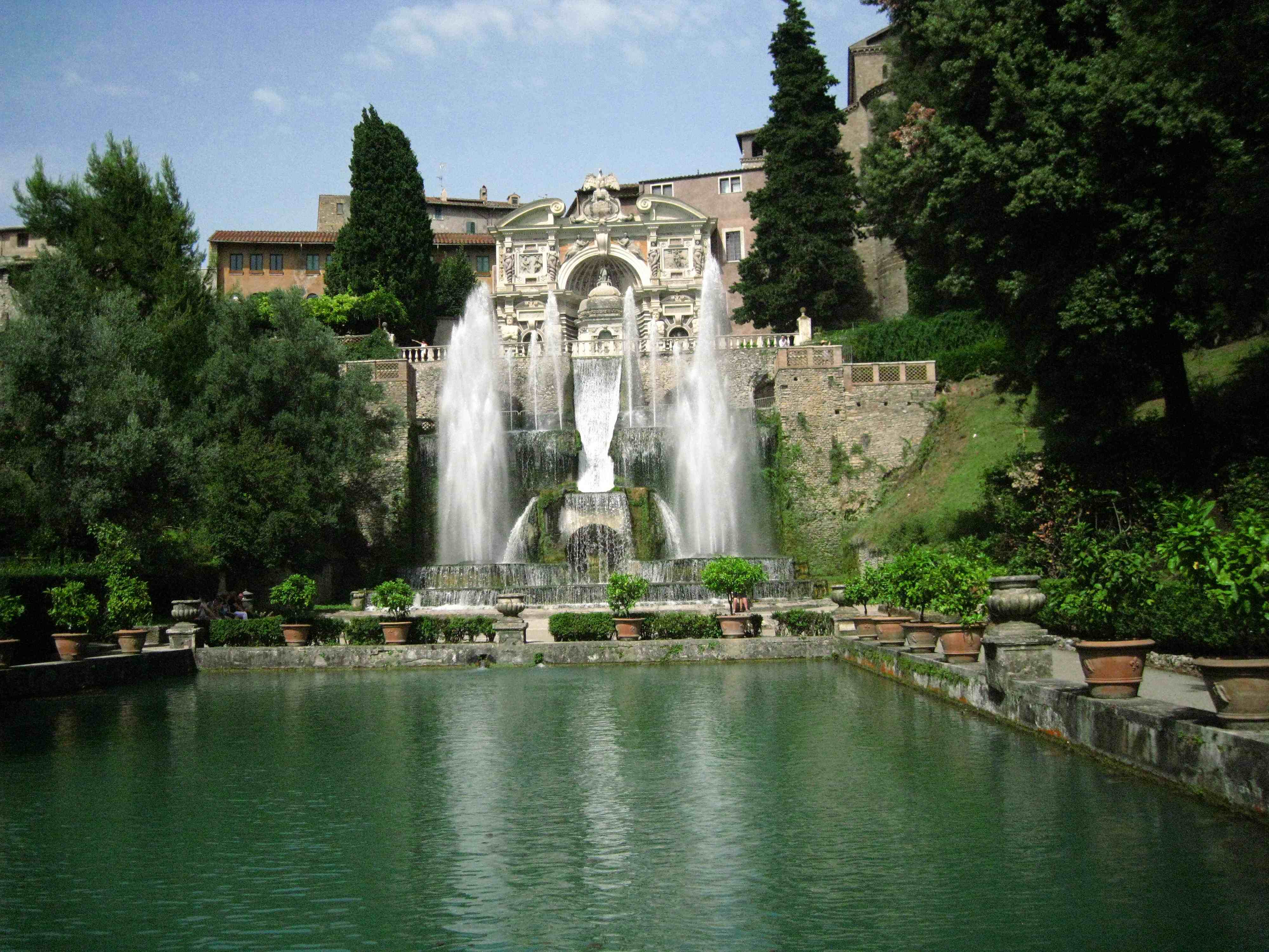De cette même ville de Tivoli nous nous dirigeons vers une autre résidence, plus récente celle-ci, puisqu’édifiée au XVI ème siècle de notre ère à l’initiative du Cardinal Hippolyte d’Este, à l’emplacement d’un ancien couvent. Au contraire de la Villa d’Hadrien dont il ne reste que des ruines, la Villa d’Este, entièrement conservée et classée elle aussi par l’Unesco au patrimoine mondial de l’humanité, est appelée à juste titre « Le jardin des merveilles ». Aujourd’hui propriété de l’État italien, cette résidence unique, doublée d’un musée aux plafonds abondamment décorés, présente un savant agencement d’éléments architecturaux, de jeux d’eau, de jardins et de bassins dont l’harmonie générale n’a n’égale que l’intelligence et l’art sublime de ses concepteurs qui s’inspirèrent des techniques d’approvisionnement en eau des Romains et même de la Villa Adriana dont ils n’eurent aucun scrupule à piller marbres et pierres pour sa construction.