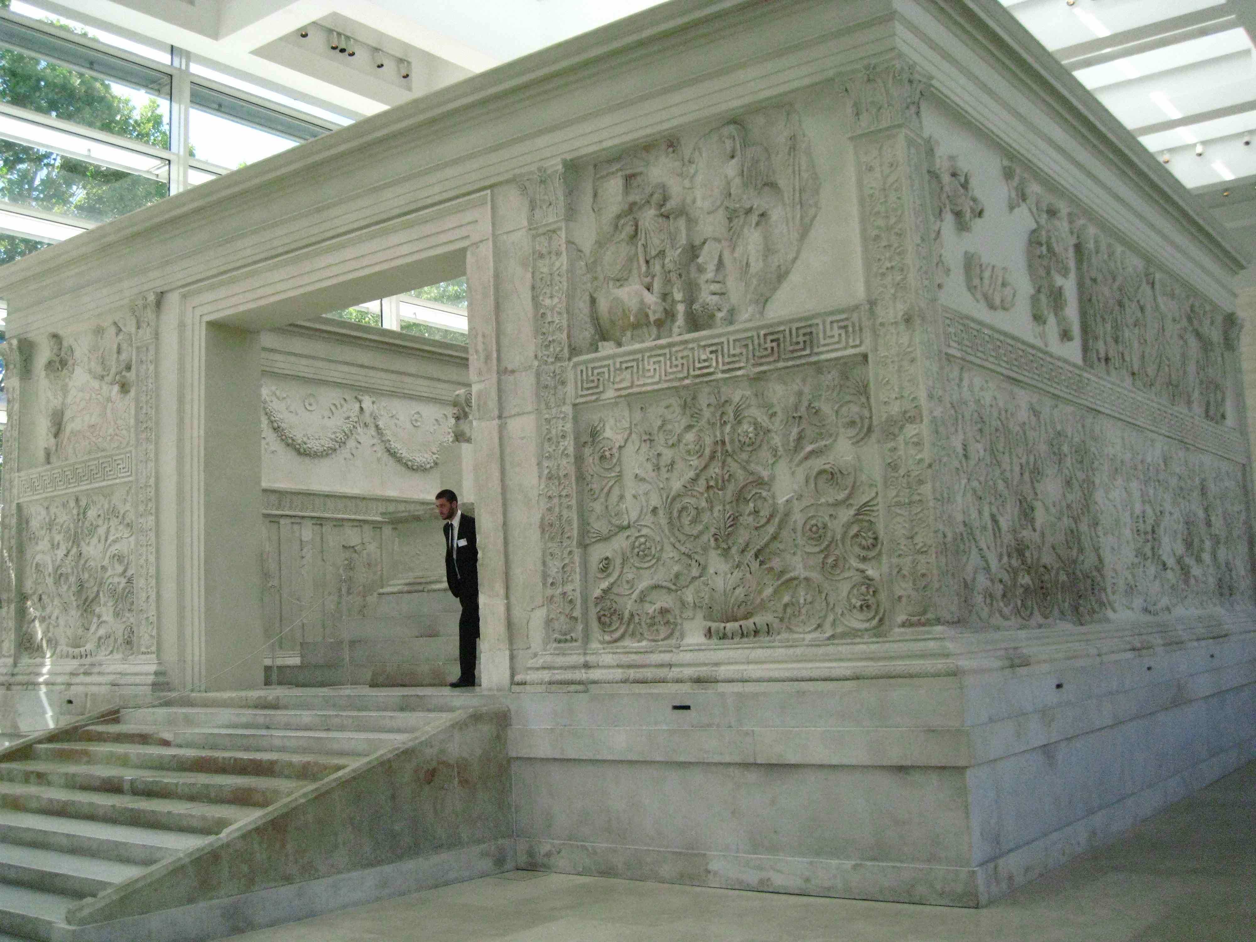 Une marche sous le soleil jusqu’à la Place d’Espagne et la célèbre Fontaine de Trévi (actuellement asséchée et en travaux), nous occupe une partie de l’après-midi que nous terminons à l’Ara Pacis, l’Autel de la Paix, que le Sénat fit construire en l’an 13 av JC, en l’honneur d’Auguste et que Mussolini au temps du fascisme a fait reconstituer et déplacer. Une fresque représentant la famille impériale par ordre hiérarchique est visible sur un coté bas du temple, une autre magnifie les hauts faits d’Auguste, le tout entrelacé de feuilles d’acanthe sculptées. Puis après un détour par le Panthéon au dôme ouvert impressionnant, nous regagnons nos résidences respectives afin de nous préparer pour notre soirée-concert aux Thermes de Caracalla.