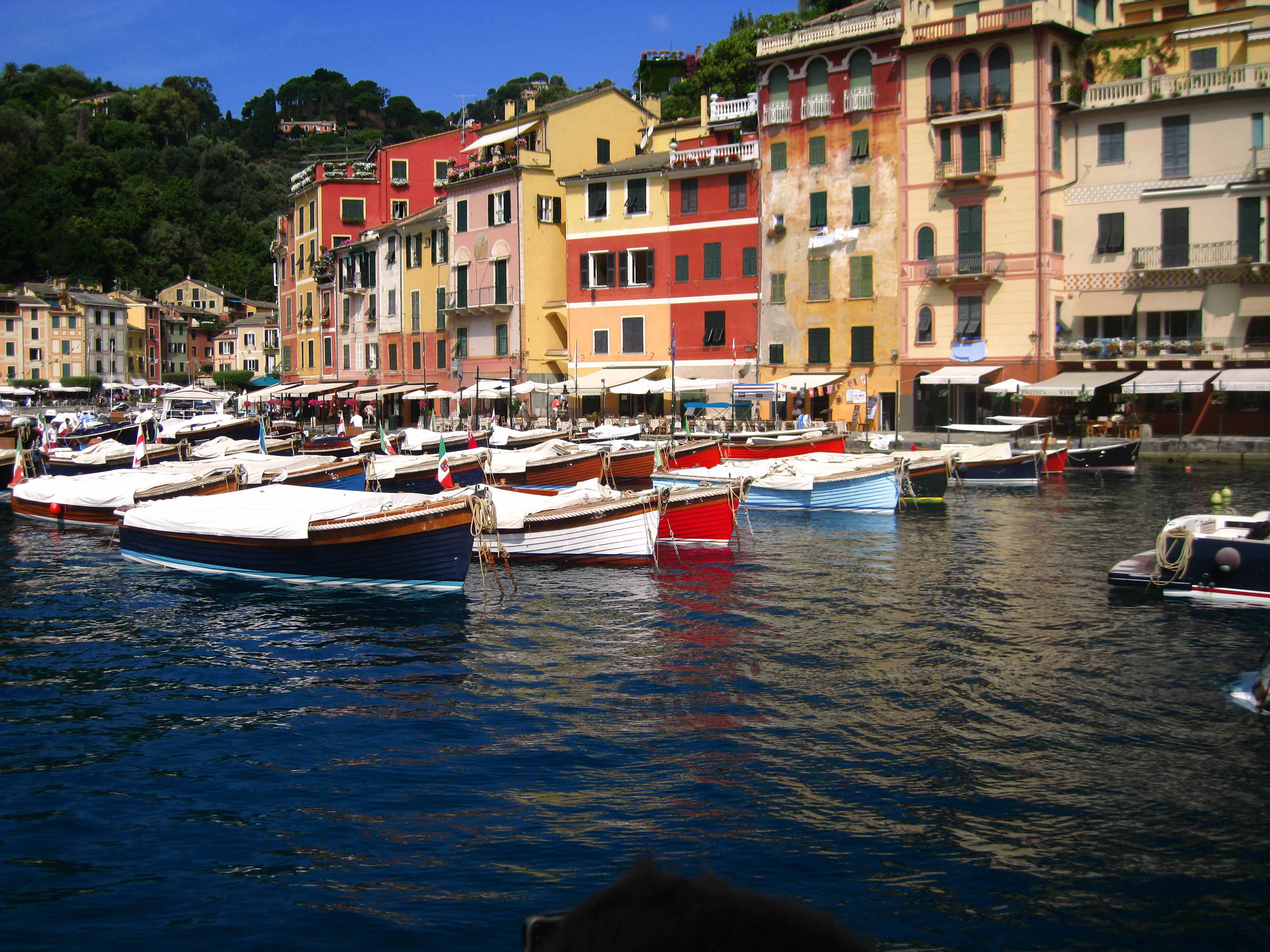 Prendre la navette de Rapallo à Portofino pour la modeste somme de 11 € l’aller-retour est une opportunité à ne manquer sous aucun prétexte. C’est ce que nous faisons dans la matinée du 25 juillet pour notre première visite dans ce petit port hautement pittoresque, bijou de la Riviera italienne, avec en tête la chanson de Dalida : Love in Portofino (à écouter ici). Habitués réguliers du Canal des Saintes sur Miss Guadeloupe et la CTM, la liaison maritime en soi n’est pas pour nous une découverte. Mais où le dépaysement est total et unique, c’est dans le paysage côtier environnant tout au long du parcours et dans le fourmillement harmonieux des couleurs des façades à l’arrivée.
