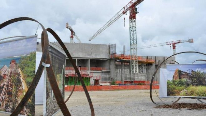 Situé sur le site de l’ancienne usine sucrière Darboussier à Pointe-à-Pitre, sur une dizaine d’hectares, le chantier du Mémorial ACTe est toujours en cours. Pour rappel, la première pierre a été posée le 27 mai 2008, lors de la commémoration du 160e anniversaire de l’abolition de l’esclavage en Guadeloupe. Les travaux effectifs de construction ont débuté en mars 2013. Le Mémorial ACTe sera un imposant édifice de 2500 m2 comprenant plusieurs espaces :