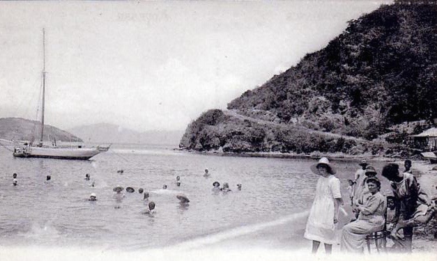« J’ai souvenance d’une île de rêve dont les mornes taillés à l’emporte-pièce par quelque architecte capricieux, recouverts d’une végétation tantôt d’un vert luxuriant, tantôt roussie, selon les saisons, se détachaient sur un ciel net, clair, lumineux. Le Chameau arrondissait son dos bossu et feuillu. Face à la mer et la dominant, la Chapelle des Marins, blanche et fleurie, juchée sur la hauteur, apportait une note de protection aux boats qui entraient et sortaient, allant et venant avec les prises des filets. On y accédait par un sentier tracé par l’usage à travers les arbustes piquants dont les acacias.