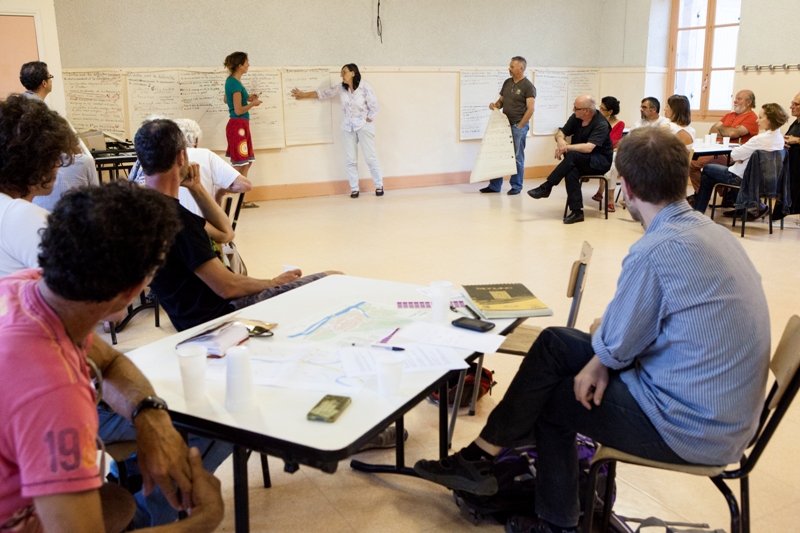 Commission participative circulation-stationnement. Par petit groupe, chacun énumère points faibles, points forts et proposition d’action concernant la circulation et le stationnement à Saillans.