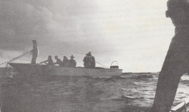 Pour revenir à notre époque, il faut préciser que si les pêcheurs saintois ne font plus de nos jours de « gros coups de senne » dans la rade pour l’une ou l’autre des raisons évoquées plus haut, ils continuent de capturer au filet dans des secteurs limités de la baie des poissons dits d’appât comme le balaou, le quiaquia, le caillu et la pisquette… Et qu’en haute mer ou le long des côtes éloignées du bourg ils perpétuent la tradition de la pêche à la senne, même si tout ce qui l’environnait autrefois – comme le guetteur des mornes – n’est plus systématiquement pratiqué. Des règles non écrites existent néanmoins lorsque plusieurs équipages se présentent pour la même arrivée massive de poisson. Ce sera le premier sur les lieux qui aura d’abord droit de pêche. Les autres attendront leur tour pour tenter la capture si les précédents ratent leur coup… Précisons que ces règles ont souvent donné lieu à des altercations entre pêcheurs, pas toujours d’accord sur leur interprétation. À ma connaissance, seul Victor VALA, dans son ouvrage Une perle blanche à Terre-de-Haut, les a consignées à ce jour par écrit. Leur mise en œuvre est en effet assez compliquée car les prétendants successifs au coup de senne doivent au préalable signaler leur intention par un canot tiré à terre ou ancré à proximité du lieu de pêche. (Voir ma chronique sur Victor VALA en cliquant sur le lien) :