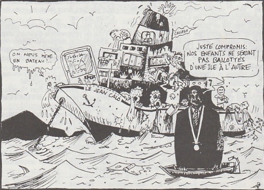 À cette date pourtant, (mai 1994) rien n’est encore joué. Mais le maire de Terre-de-Haut organise réunions sur réunions pour inciter ses administrés à refuser d’inscrire leurs enfants à Terre-de-Bas. Et, fort de sa victoire octroyée par Balladur, il écrit dans le Bulletin du 15 août 1994 : « Aujourd’hui, grâce à ma ténacité et à toutes mes interventions, nous sommes heureux et fiers d’avoir réussi que notre collège Jean Calo soit maintenu à Terre-de-Haut et que nos enfants continueront à suivre leur scolarité sans rupture prématurée de l’affection familiale. »