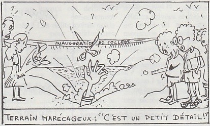 À l’acharnement du maire de Terre-de-Haut qui envisage, pour proposer un terrain dans sa commune, soit de procéder à une expropriation, soit d’utiliser la saline du Marigot, le Président LARIFLA répond qu’il ne peut retenir ni l’une ni l’autre de ces solutions. Il précise en effet que la loi interdit d’une part l’expropriation pour les établissements d’enseignement et que, d’autre part, la Commission départementale de sécurité de l’Éducation nationale, ayant déjà procédé à l’analyse des terrains du Marigot, avait refusé son agrément pour ce site marécageux, interdit de construction. Ce à quoi, le maire, M. Robert JOYEUX répond que ce ne sont que de « petits détails » auxquels il ne faut pas s’arrêter…