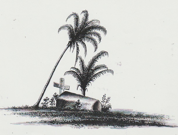 Tombe de Caroline au cimetière de Terre-de-Haut d’après un dessin de Fréminville