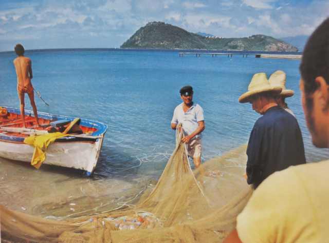 Pêcheurs saintois remaillant leur filet – Photo Brochure Guadeloupe – 1974