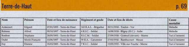 Mais trêve de polémique. Le sujet est trop grave pour s’arrêter à d’aussi viles et honteuses considérations dictées par la bêtise, le manque d’honneur et de dignité. Polémique d’autant plus stérile que le service éducatif du Conseil général vient de publier des extraits des archives départementales mentionnant, commune par commune, le nom de tous les soldats guadeloupéens morts pour la France au cours de la Guerre de 1914-18. Liste dans laquelle figurent les noms de treize de nos compatriotes saintois, cinq pour Terre-de-Haut, huit pour Terre-de-Bas.