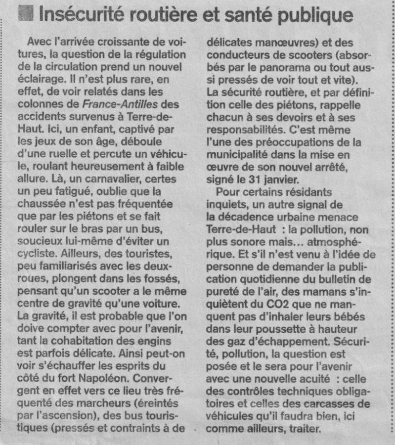 Circulation : une pétition adressée au maire de Terre-de-Haut