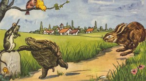Sylvianne Telchid et Hector Poullet, deux spécialistes reconnus du créole guadeloupéen, ont eu la bonne idée d’adapter en créole les fables de Jean de la Fontaine dans deux savoureux recueils intitulés Zayann I et II, publiés aux Éditions PLB, respectivement en 2000 et 2002. Je vous propose aujourd’hui de découvrir la transposition créole de la fable Le lièvre et la tortue.