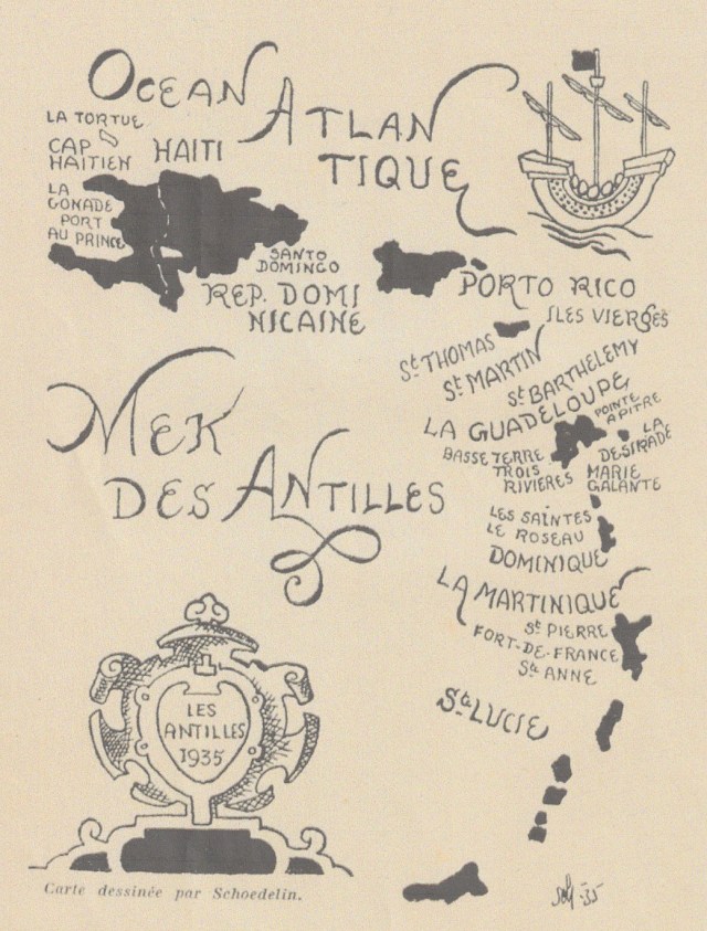 Février 1934. C’est l’hiver en France. Le froid et la pluie règnent en maîtres à Paris comme à Bordeaux. Marthe Oulié a 32 ans. Elle est docteur en archéologie et navigatrice. Elle observe que, dans la capitale « les agences anglaises mettent bien en évidence, à côté d’une maquette de paquebot de la Star, une affiche aux cocotiers étourdissants sur un ciel de saphir : Come to the West Indies !… Jamaica, Trinidad, Paradise of sun-shine.  Mais n’y a-t-il donc pas aussi, se dit-elle, des Antilles françaises, des cocotiers français, une Martinique, une Guadeloupe ? Aucune affiche ne les rappelle au passant. » Alors sa décision est prise : elle partira en Martinique, à la Guadeloupe et en Haïti pour retrouver chaleur et soleil et écrira un livre sur son périple qu’elle intitule : Les Antilles, Filles de France. De ce livre envoûtant, publié à Paris en 1935 aux Éditions Fasquelle, c’est le chapitre sur les Saintes que je vous propose. Vu sa longueur, je le publierai en cinq parties. Ce long chapitre (pages 190 à 208) s’intitule :