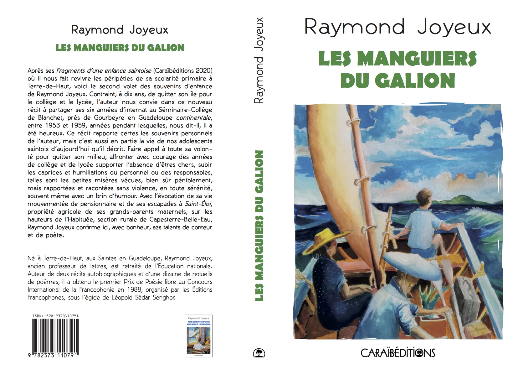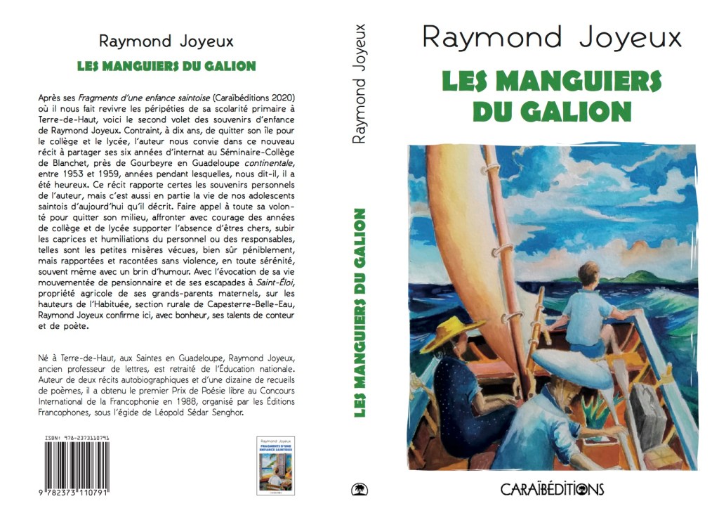 Oui, je sais : ajouter mon nom à cette liste paraîtra sans doute prétentieux et mal venu aux esprits chagrins, mais qu’y puis-je ? puisque CaraïbÉditions vient de publier le second volet de mes souvenirs d’enfance intitulé Les manguiers du Galion, livre que j’ai présenté dans une précédente chronique, il est bien normal, selon moi, qu’en tant qu’auteur saintois, j’en parle ici aussi ! Quitte à vous proposer – pour éviter de m’étendre sur mon propre cas – seulement la première et la quatrième de couverture dont je ne suis ni l’illustrateur, ni l’auteur du résumé.. Merci de votre compréhension. Et à bientôt pour une prochaine chronique.