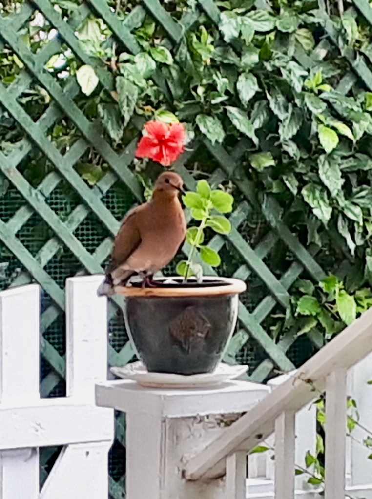Tourterelle à l’hibiscus, symbole de paix et d’innocence –