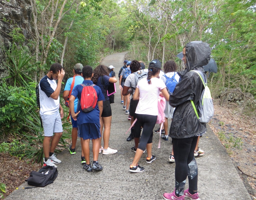 L’excursion a démarré le vendredi 8 avril 2022 à 6h30 au pied de La Colline pour étudier la plus vieille coulée de lave andésitique de Terre-de-Haut. Cette lave a été datée à 4,7 millions d’années par la méthode du Kr/Ar.