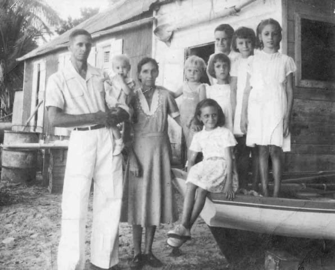 On reconnaît sur la photo ci-contre mes grands-parents Joubert et Léontine Joyeux, mon père Raymond, mon oncle Joseph en barboteuse, mes deux tantes Nadège et Odile, et trois cousines du côté de ma grand-mère.. (En arrière plan la maison familiale côté mer où se situe l’expo d’aujourd’hui.)