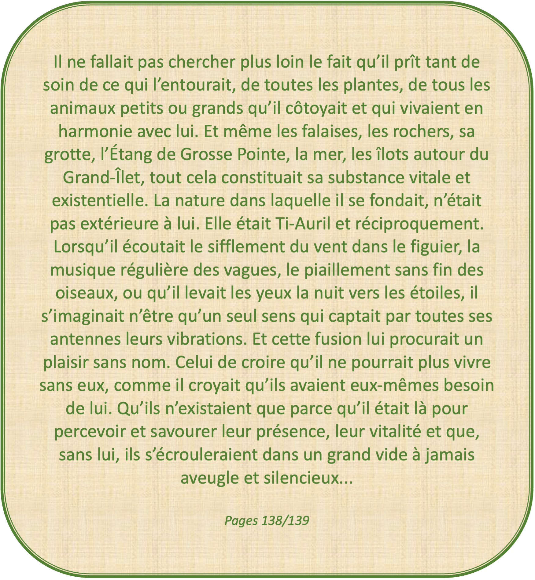 Cet enfant sauvage était d’une certaine façon « une île dans une île », une double protection de son riche monde intérieur face aux contraintes sociales de l’île devenue  prison morale.