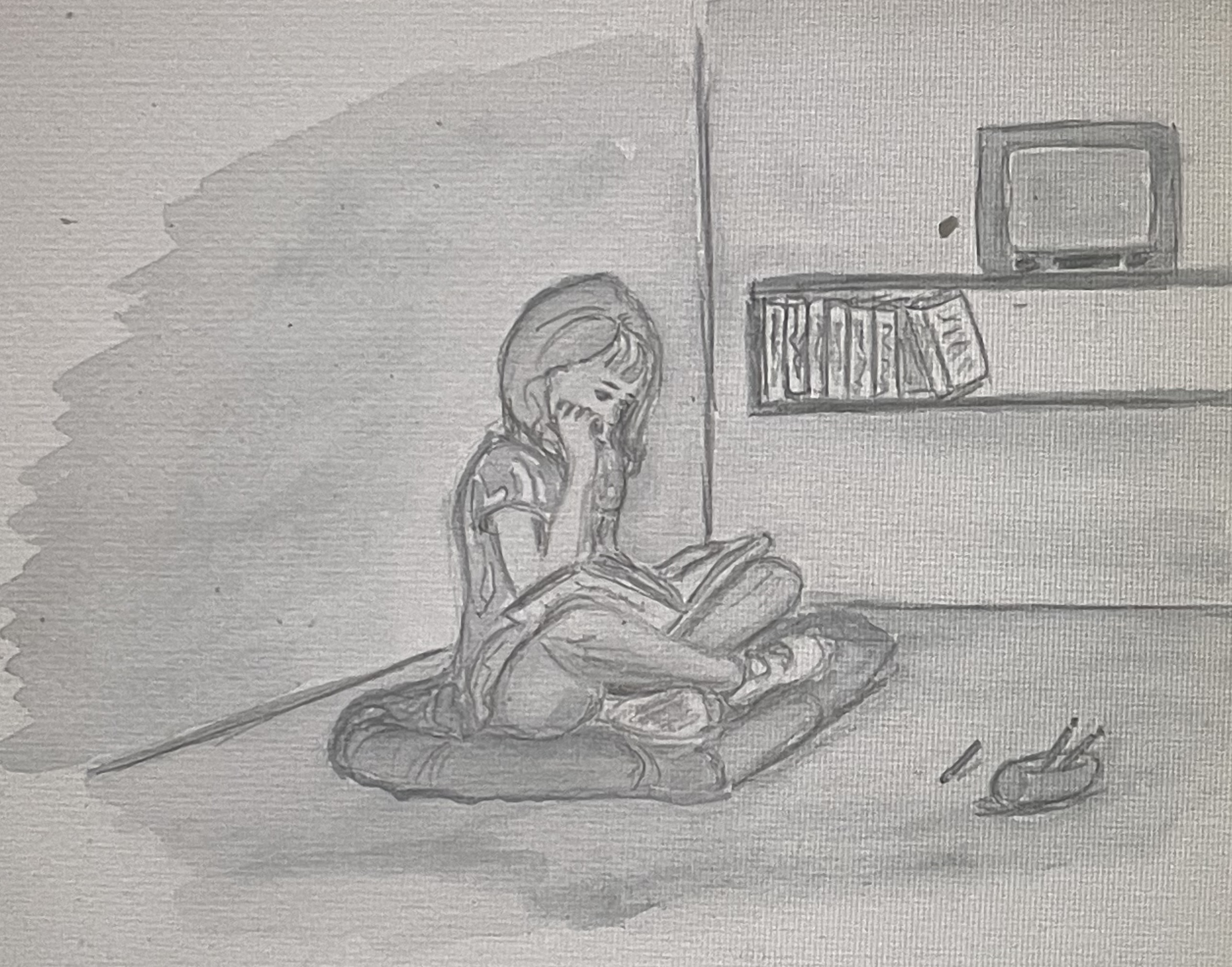 Lorsqu’elle mit sur la table la boîte de crayons de couleurs et le joli dessin qu’elle n’avait pas encore expédié, elle ouvrit grand les yeux et des larmes se mirent à couler lentement sur son visage.