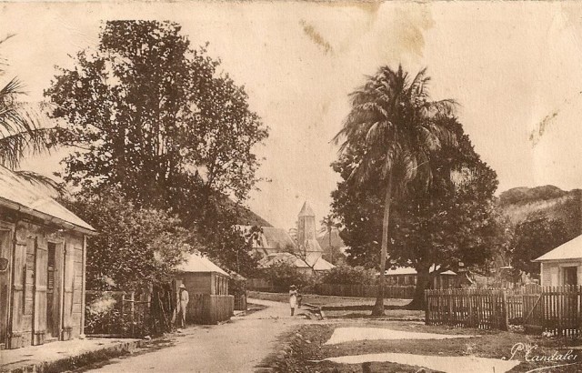 Quand je suis partie à la recherche du maire, c’était l’heure de la sieste. Persiennes closes, le village dormait, sans un bruit de mouches. Le vent était seul à se promener en secouant des feuilles, le long de la rue. Mais maintenant, on s’est réveillé, des femmes au pas des portes, leurs cheveux crépus bien roulés en tortillons sur le front et les tempes, s’étirent en faisant saillir leurs seins et leurs hanches. Les hommes, bras ballants, sont groupés sur la jetée, car le vapeur hebdomadaire « Le Trois-Ilets » vient d’y accoster et on débarque quelques tonneaux, de quoi enivrer en imagination tous les assistants.