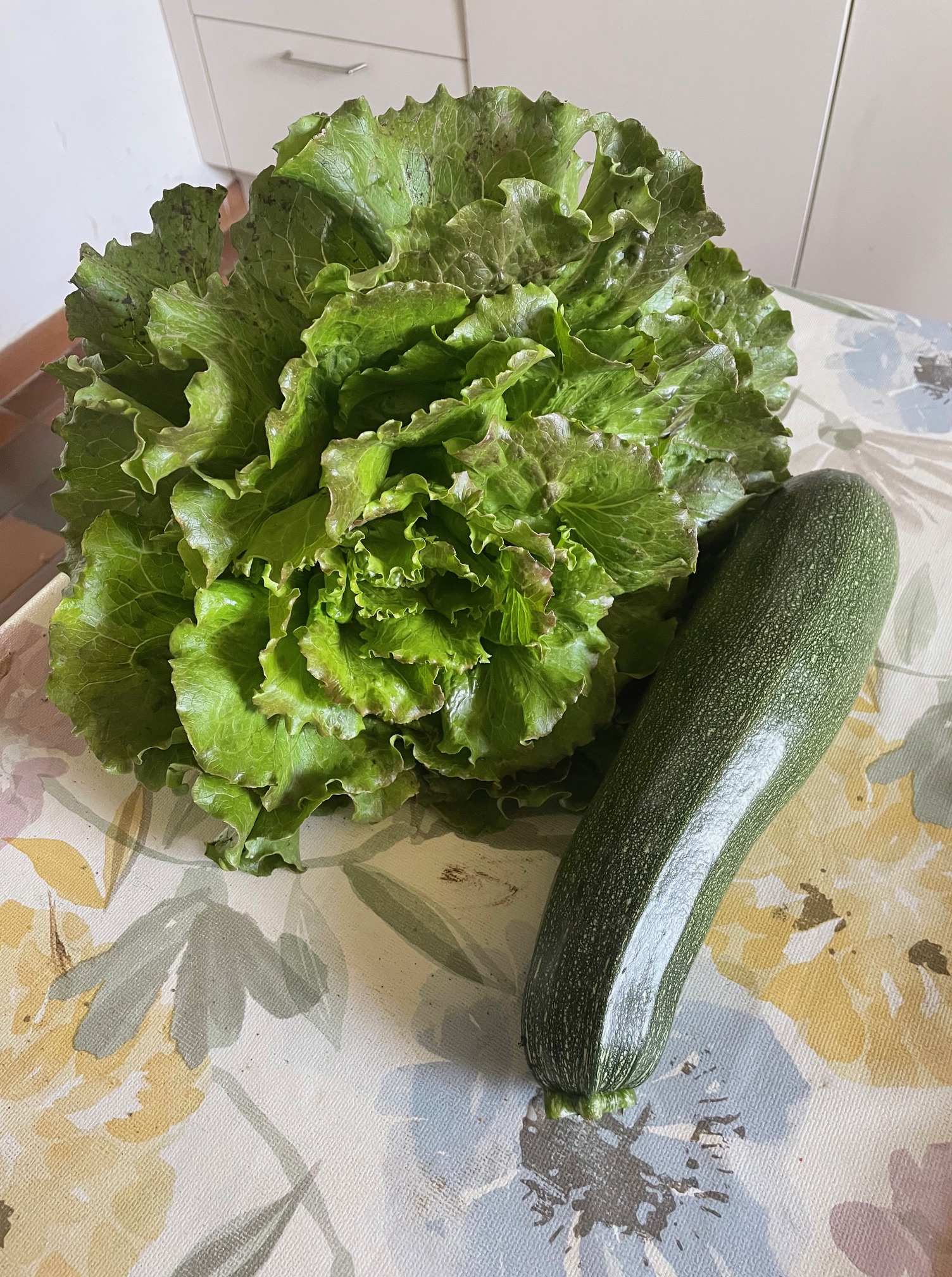 Lever tardif : pour une fois 9h 30… avec toujours beau soleil au rendez-vous.. Bouquet de roses et boutons d’or. Je cueille une nouvelle courgette et rafraîchis les pieds à l’arrosoir. Pour le potager, ce sera à la tombée de la nuit ou du jour, c’est selon…
