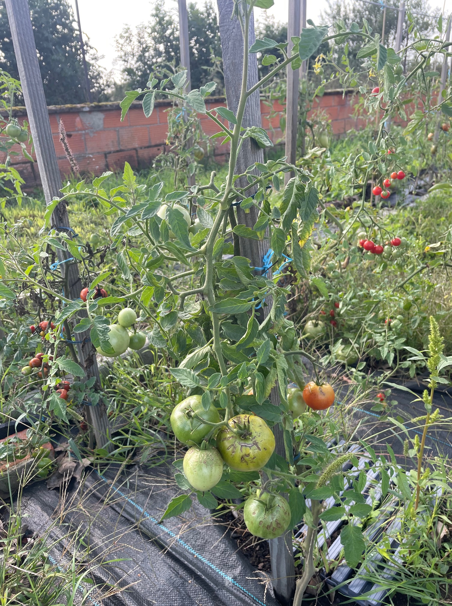 Beaucoup de tomates vertes à donner à François, comme l’an dernier pour confiture. Échange de bon procédé puisque notre ami ayant réussi ses courges, nous en offrira pour l’Halloween du 31 octobre.